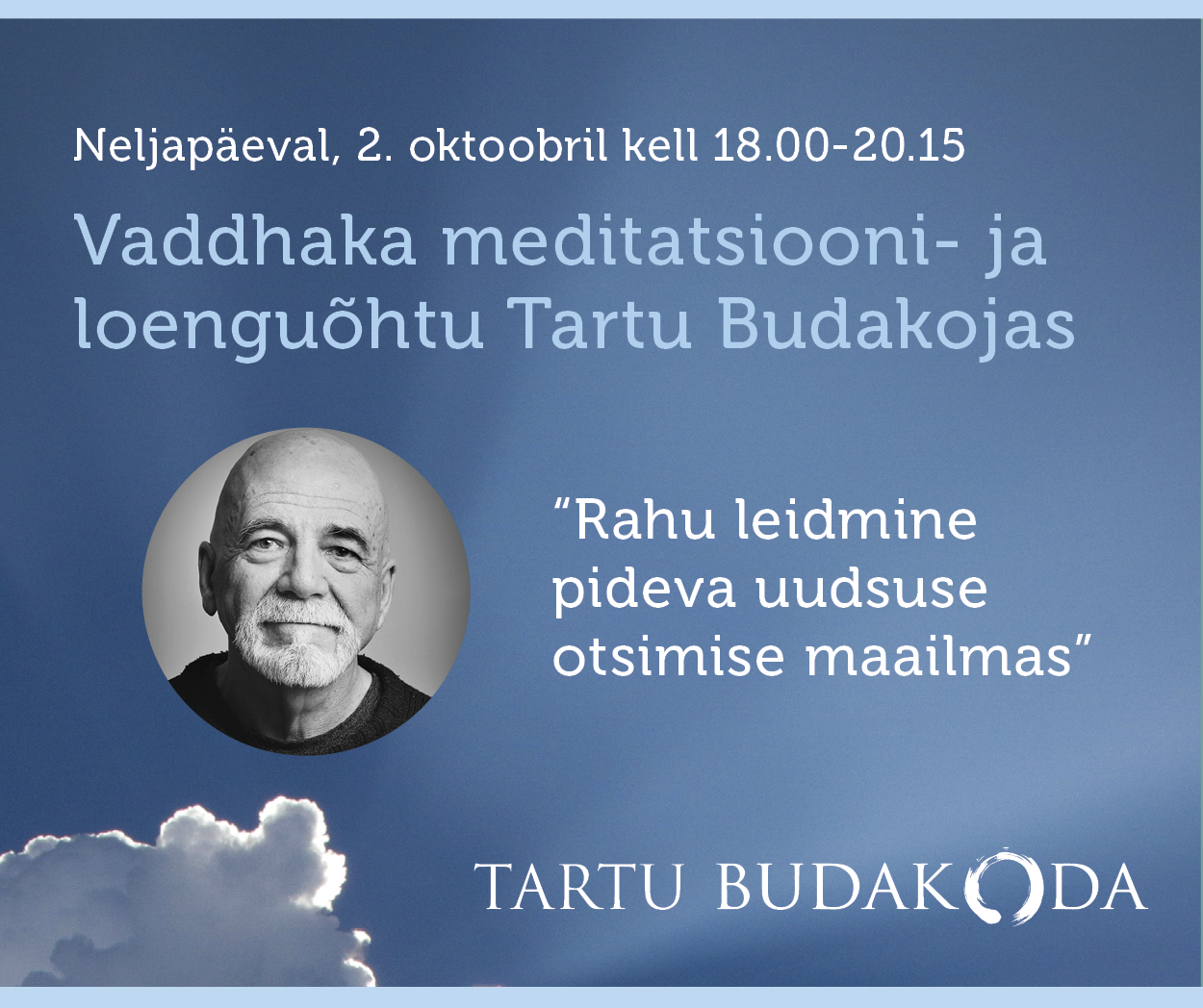 Tartu Budakoja regulaarsetel meditatsiooni- ja budismiõhtutel saab osaleda Tartu Budakojas kohapeal ja veebis Zoomi keskkonna vahendusel.